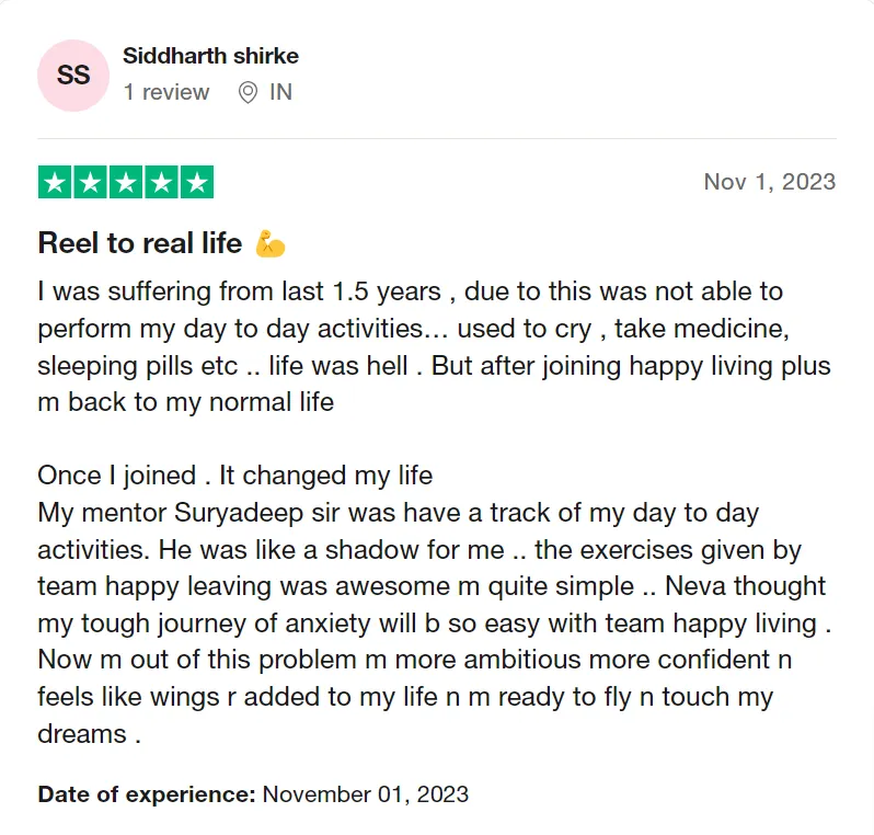 1-1 CALL WITH OUR SENIOR MOST ANXIETY EXPERT WHERE A DETAILED GAME PLAN WILL BE MADE TO GET OUT OF ANXEITY (₹6000 VALUE)